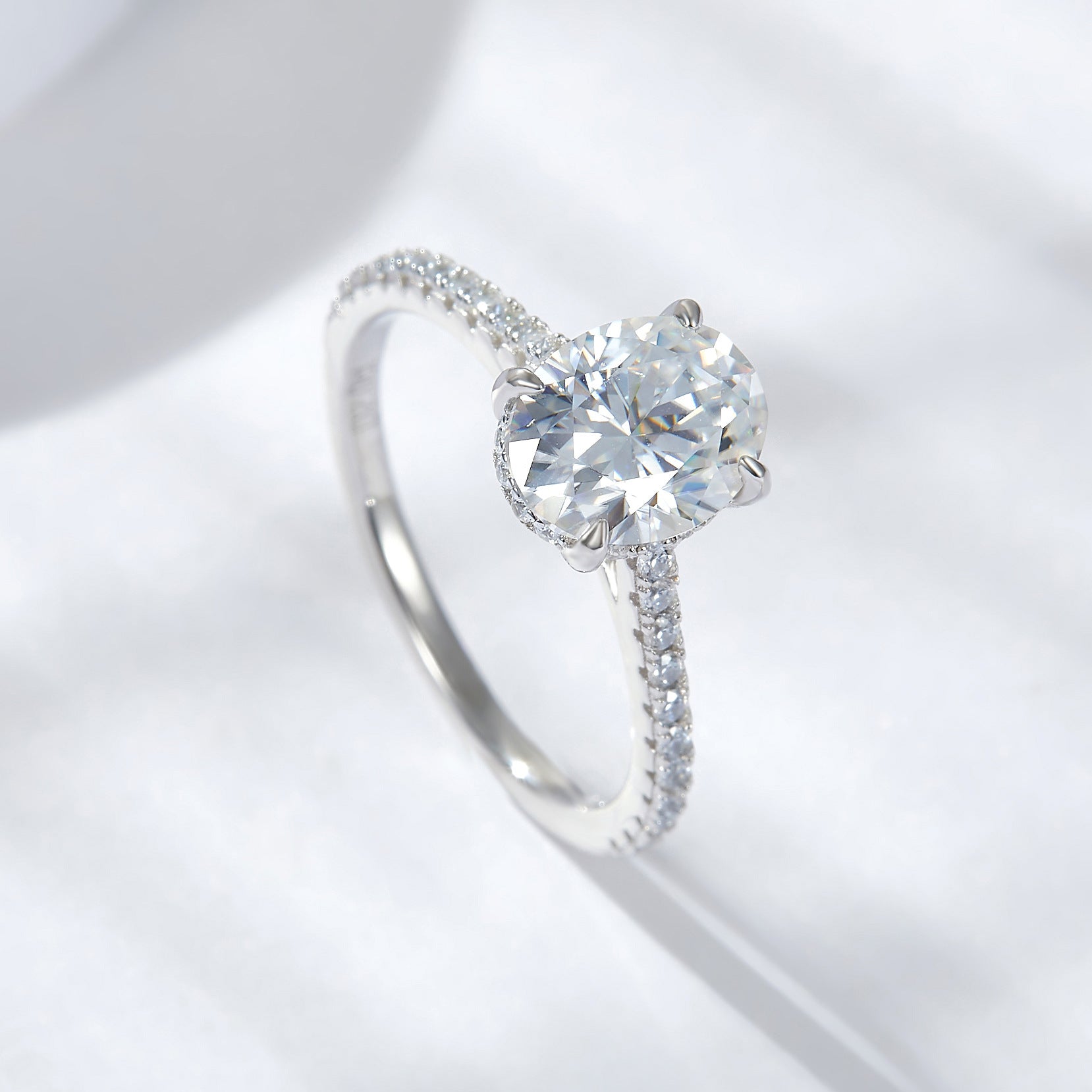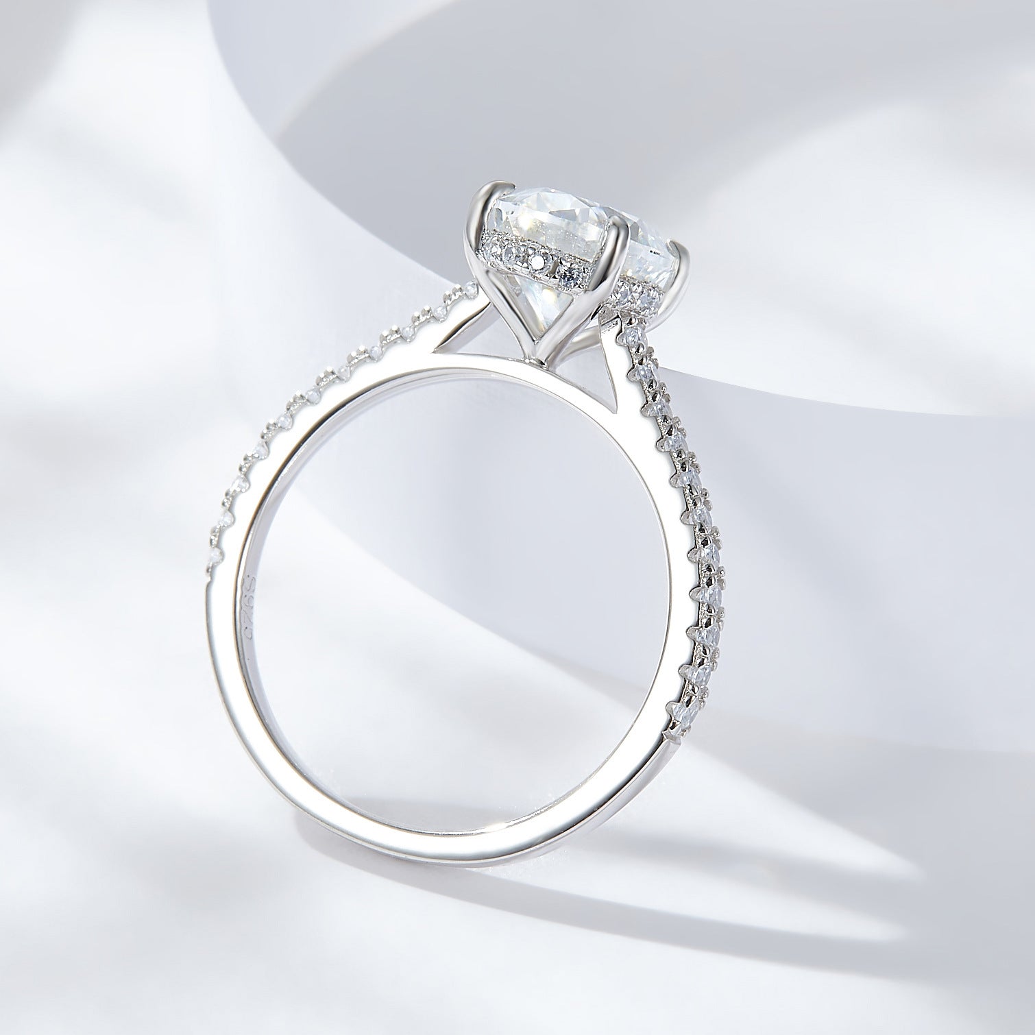 This 2 carat oval Moissanite ring crafted in 925 silver and plated in gold offers a stunning and durable piece of jewelry. With its brilliant shine and unique egg-shaped design, this ring is sure to catch the eye. Perfect for any occasion, it adds a touch of elegance and sophistication to any outfit.