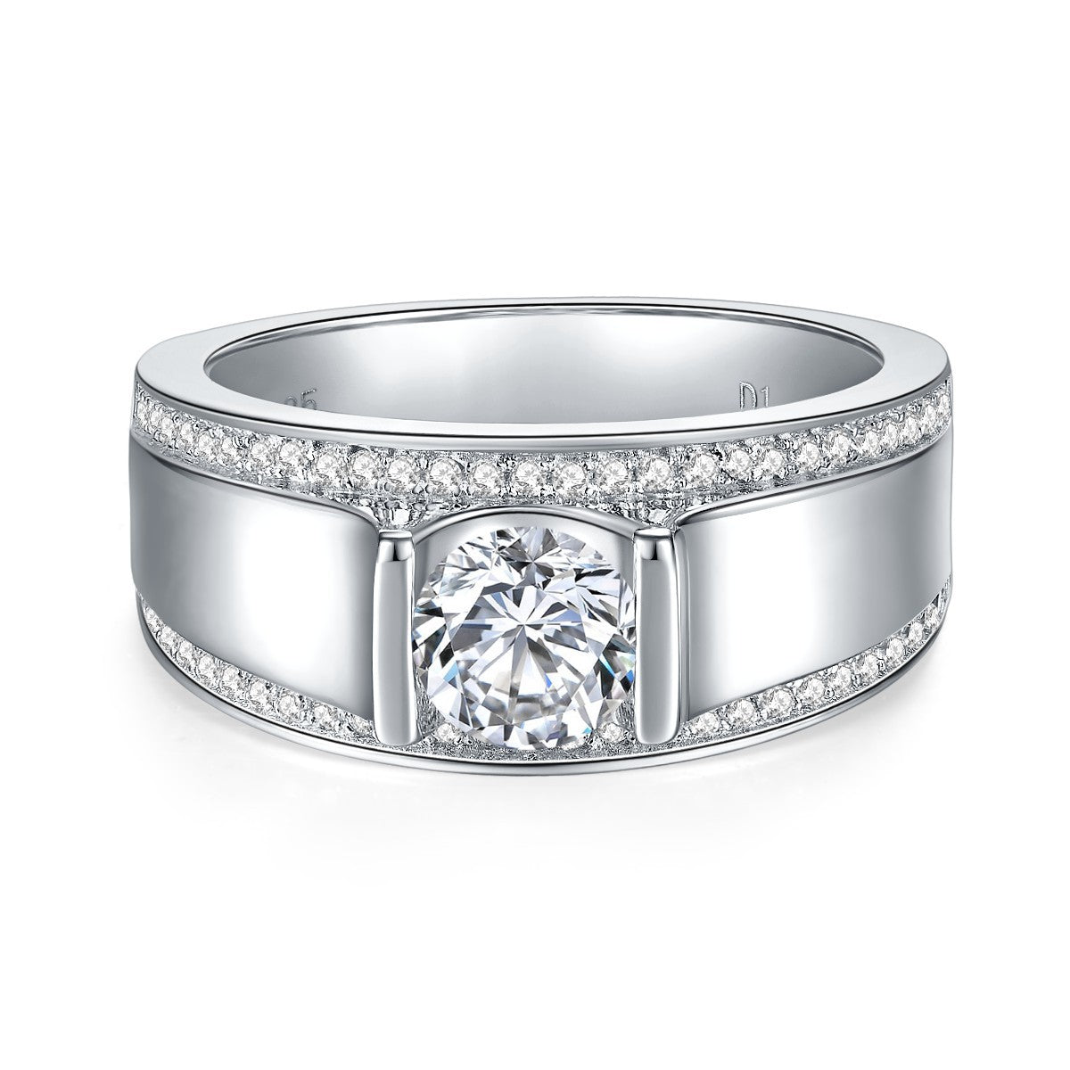 These elegant 2 carat men's wedding rings are made with high-quality moissanite stones, plated in silver and 18K gold for a luxurious finish. The perfect gift for a couple, these rings symbolize the strength and heroism of their love. Enhance any special occasion with these stunning rings.