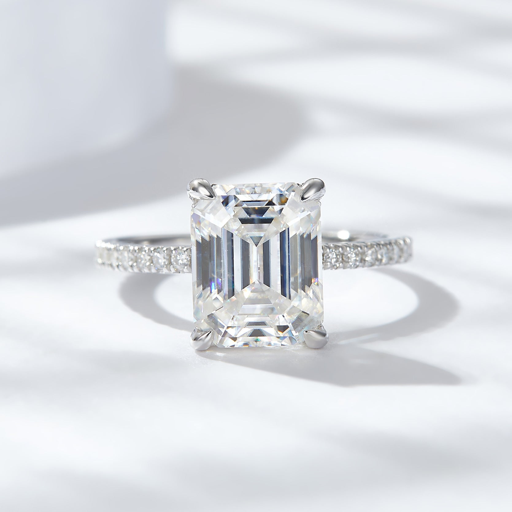 Ring Setting : 4-Prong-Setting Center Stone Material :- Moissanite , Total Stone Weight 10 CT , Center Stone Shape : Emerald Shape,