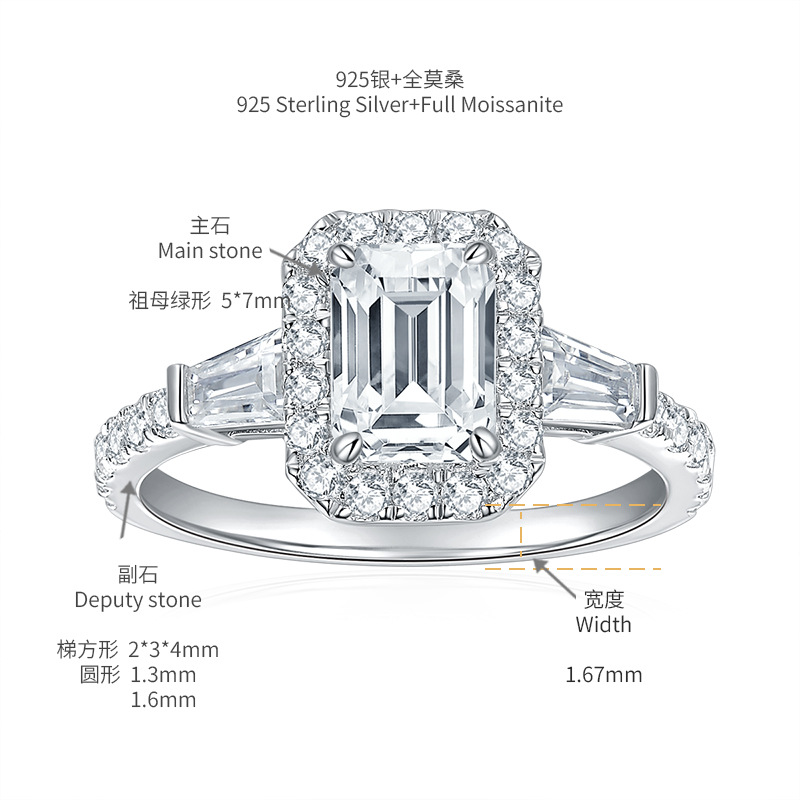 Experience the brilliance and sophistication of our 5*7mm emerald cut full Moissanite silver plated 18k gold ring. Crafted with precision and elegance, this stunning ring features a sparkling Moissanite stone and luxurious silver and gold plating. Elevate your style and make a statement with this timeless piece of jewelry.