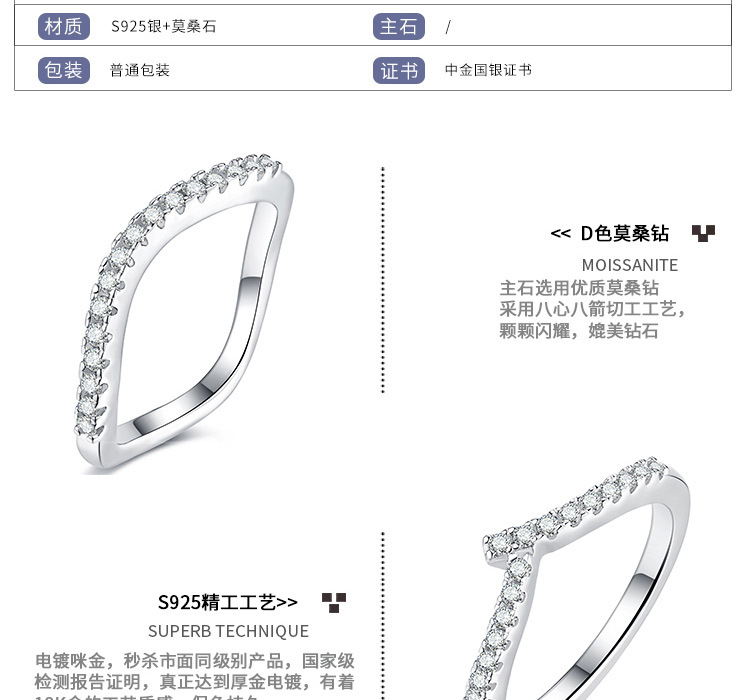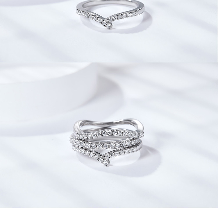 Elevate your style with these elegant 925 sterling silver Japanese and Korean style V-shaped row rings. Each ring is micro-inlaid with moissanite and expertly plated with 18k gold for a luxurious finish. The closed mouth design adds a unique touch to these stunning accessories.