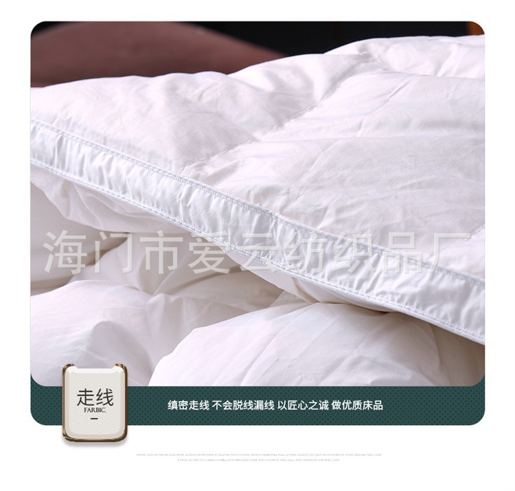 With its thousands of triangular pores, down can shrink and expand in response to changes in temperature, keeping the sleeping environment relatively constant. As a result of the quilt's optimization of filling rate, the body feels hardly any pressure.