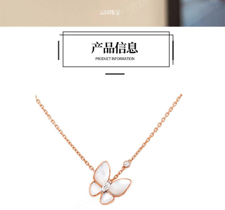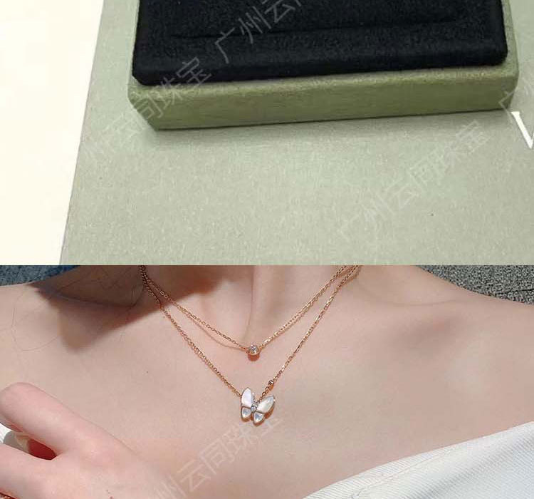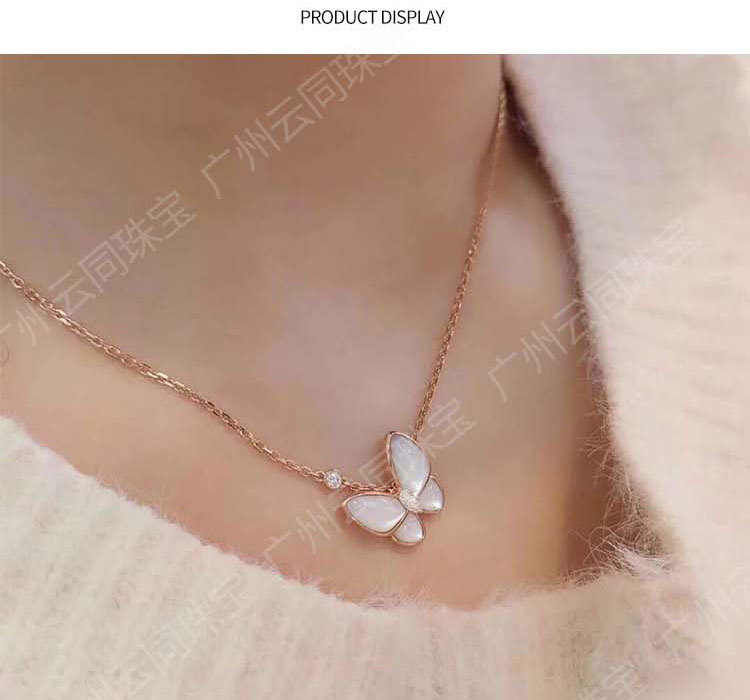Elevate any outfit with our Butterfly Necklace. Crafted from 925 silver and adorned with a white Mother-of-Pearl pendant, this niche design showcases a majestic butterfly. Finished with a rose gold clavicle chain and accented with a marquise Moissanite, this necklace adds a touch of elegance to your look.
