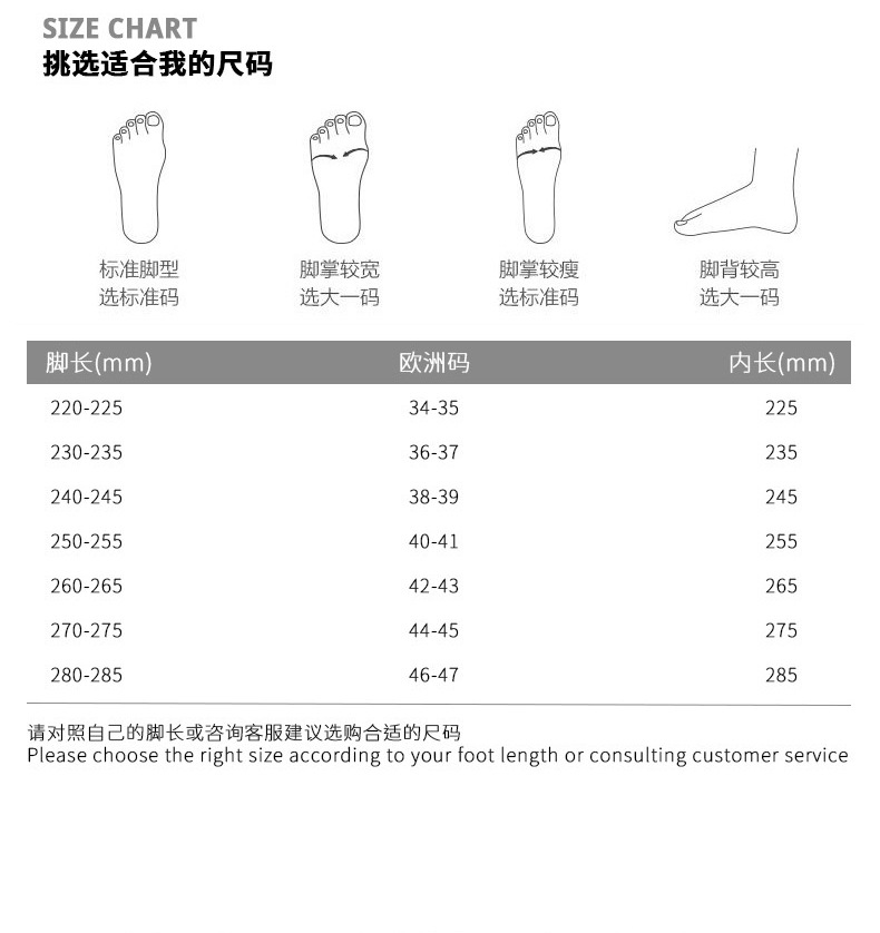 The men's and women's shoes are roomy and generously sized, so they fit securely on your feet.