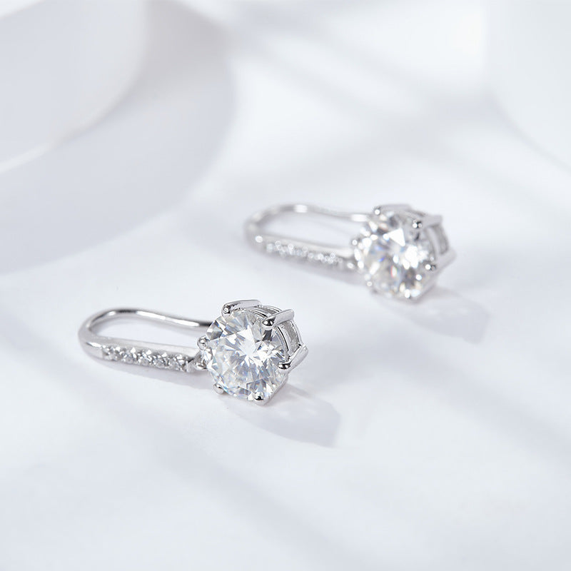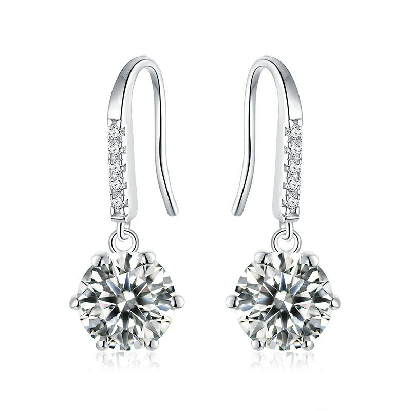 Elevate your style with our Classic six-prong moissanite earrings. These stunning earrings feature a delicate earring hook and are ornamented with electroplating 18K white gold, giving them a trendy and sophisticated look. With the high-quality moissanite stones, these earrings offer timeless elegance and undeniable glamour. A must-have for the fashion-forward woman in 2022.