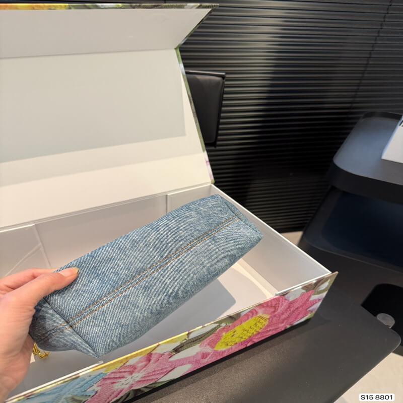 This is an authentic small calfskin Cubi bag with a jacquard logo in ecru and tan. This elegant shoulder bag is crafted from canvas. It features embroidered LOE symbols on the front, with brown leather straps and trim. The top opens to a spacious canvas interior with patch pockets.