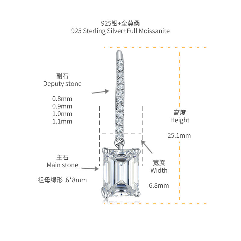 Upgrade your jewelry collection with these elegant Emerald cut 6*8mm square ear hook earrings. Made with S925 sterling silver and gold-plated, these earrings feature full moissanite stones for a luxurious and sophisticated look. Perfect for any occasion, these earrings will add a touch of glamour to any outfit.
