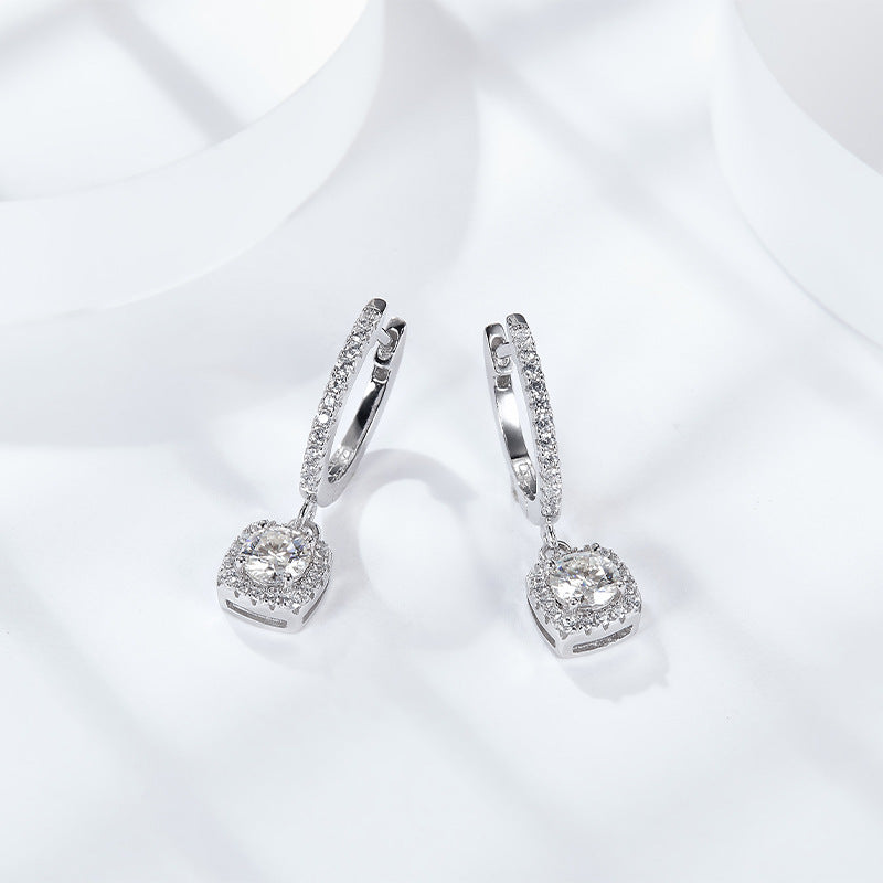 These fashion niche earrings feature D color moissanite and a classic princess square bag design. The simple yet elegant design is perfect for women looking for a touch of sophistication. With diamond earrings and secure earhooks, these earrings are sure to impress.