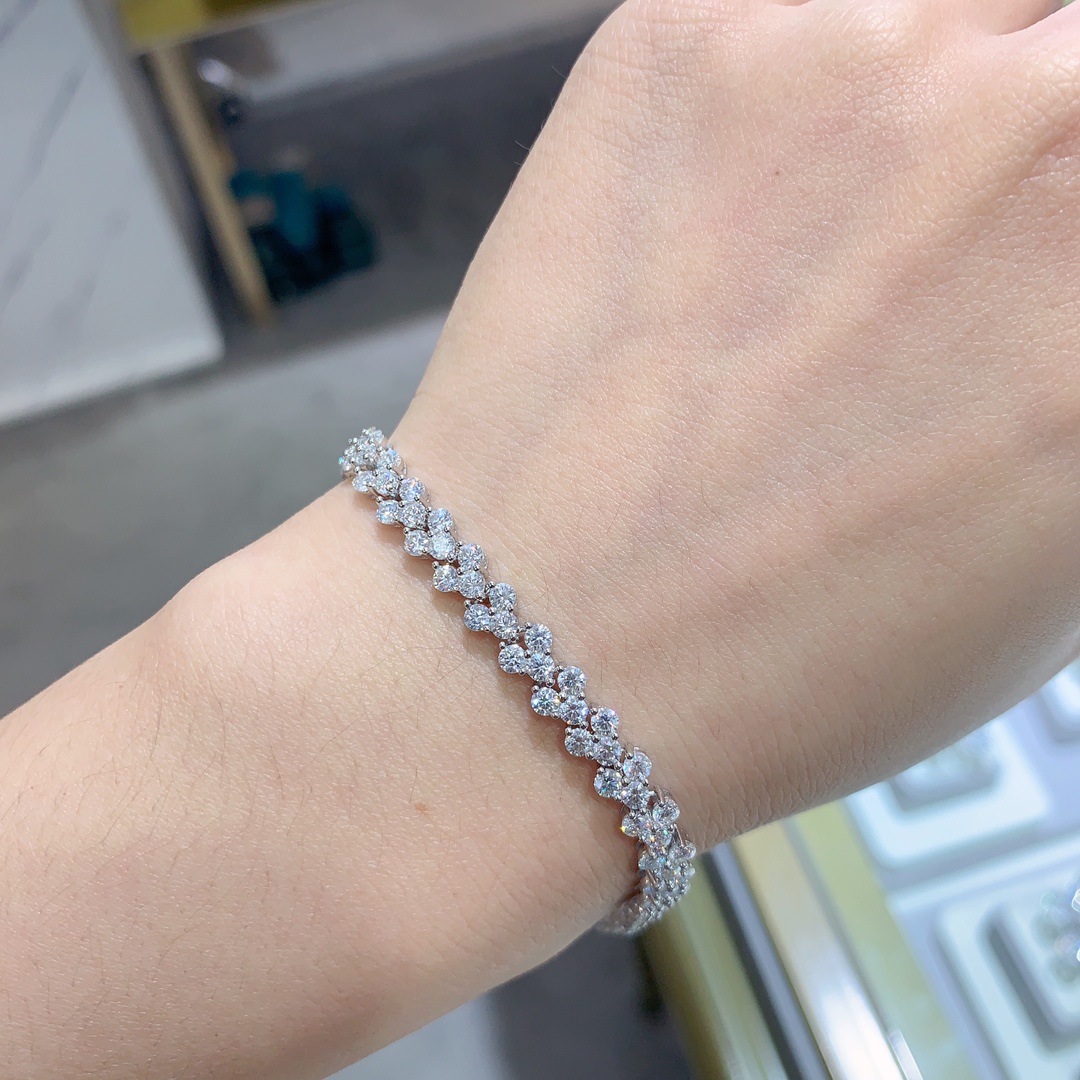 Expertly handcrafted, this Full Diamond Round Bracelet features a unique V-shaped design with 2.8mm moissanite stones, set in high quality S925 silver. Enjoy the brilliance and durability of moissanite, a rare gemstone that's second only to diamonds in hardness and fire. Elevate your look with this stunning bracelet.