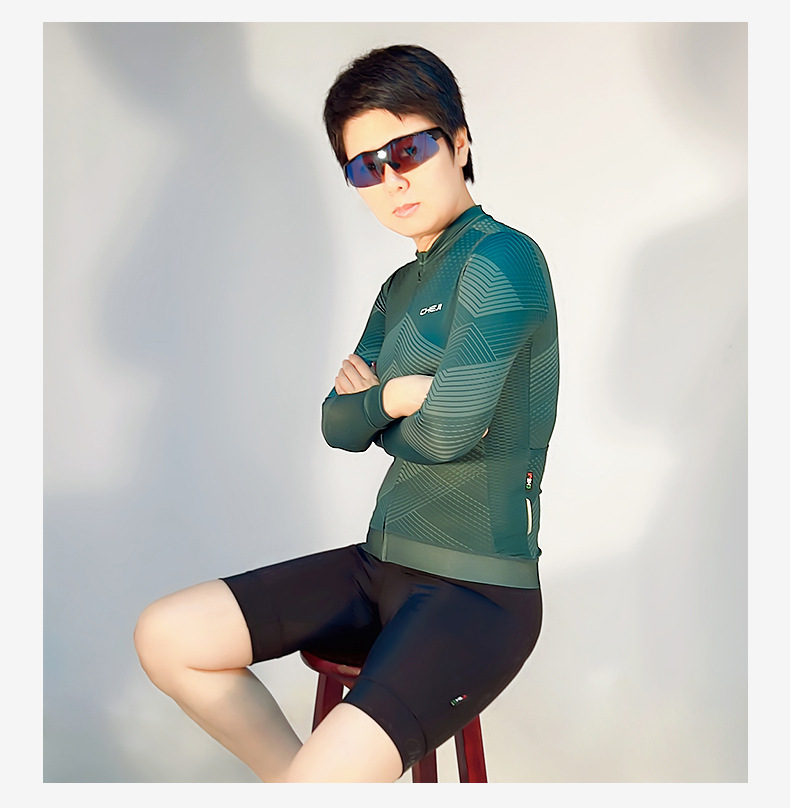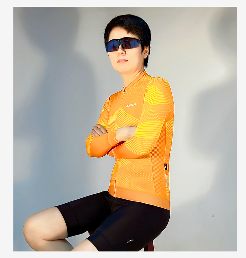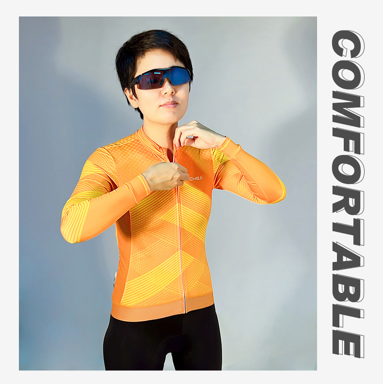 This cross-border cycling wear for women is made with high-quality, thin material. It is available as a spot wholesale item from top e-commerce sites like Amazon and AliExpress. Stay comfortable and stylish on your rides with this long-sleeved top.