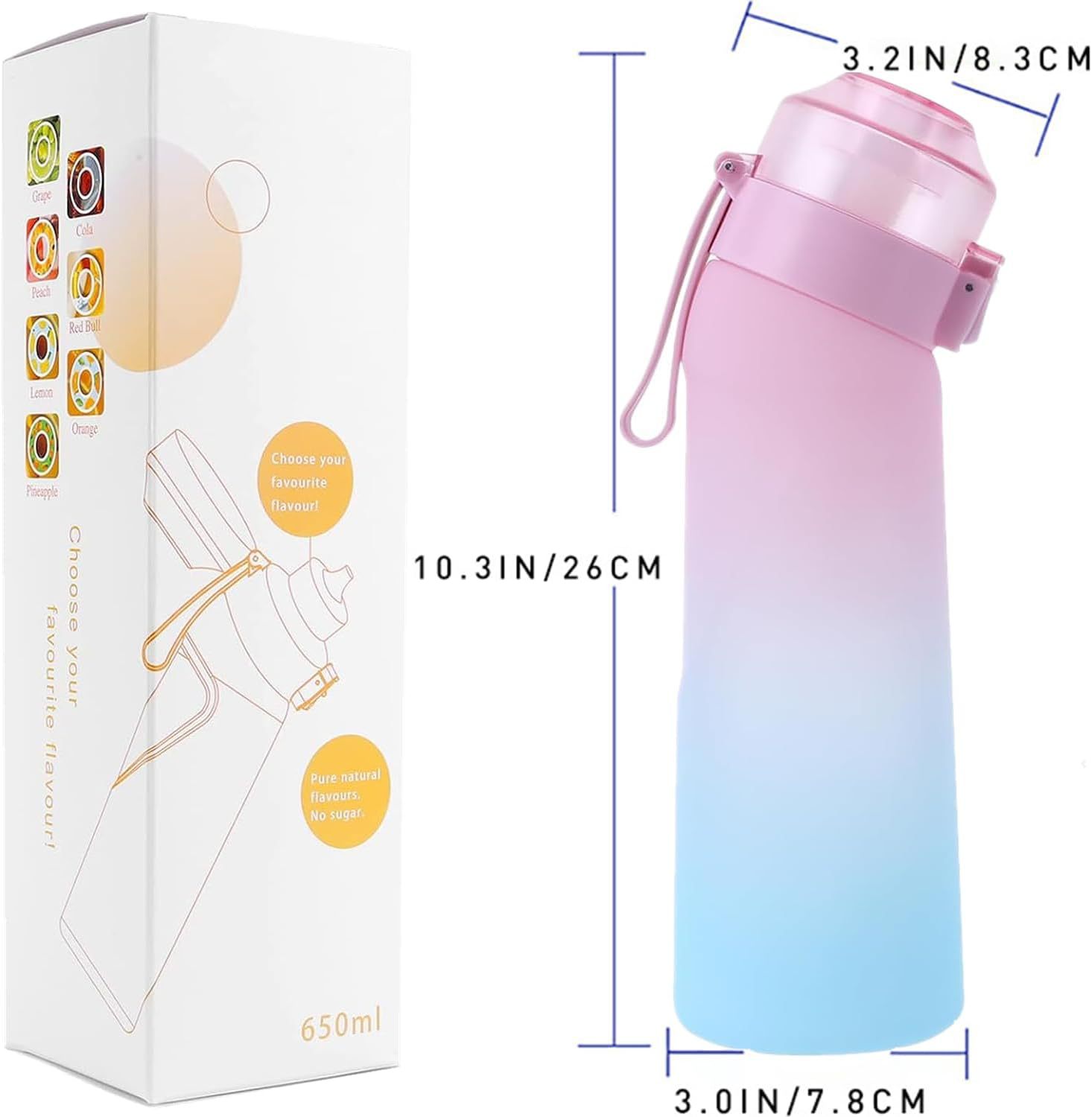 [PACKAGING CONTENT]: Depending on the color and flavor pods you selected, we will ship the water bottle set according to that selection. (650mL+7 pods)