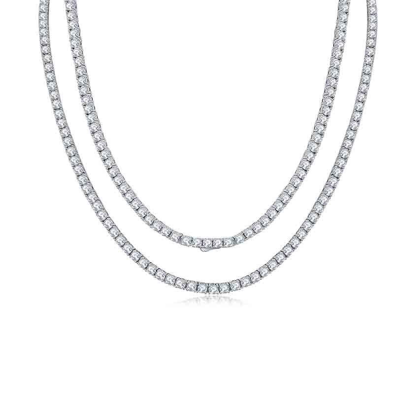 This 18k white gold plated hip-hop rapper necklace features a stunning 1 carat moissanite stone and a 5mm tennis chain. Designed for the stylish and bold, this necklace is a perfect addition to any outfit. Upgrade your streetwear game with this high quality piece.