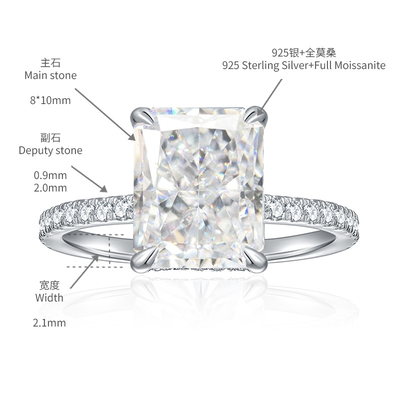 Indulge in the timeless elegance of our Ice Flower Cut Moissanite Rectangular Engagement Ring. Featuring a dazzling 8*10mm 4 carat moissanite stone, this ring is expertly crafted with S925 silver plated 18kk for added shine and durability. Make a statement with this stunning piece and captivate all those around you.