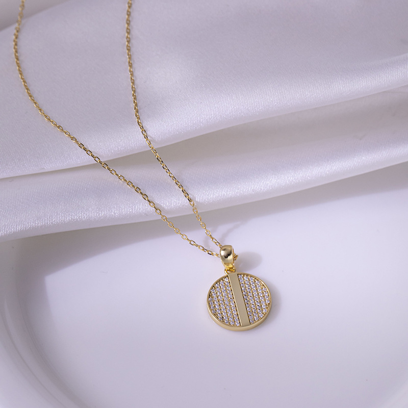 Elevate your style with our Ins niche design yellow gold coin pendant necklace. Featuring full diamond moissanite set in S925 silver plated with 18k yellow gold, this elegant piece adds a touch of luxury to any outfit. Enjoy the sparkle and shine of quality materials and expert craftsmanship.