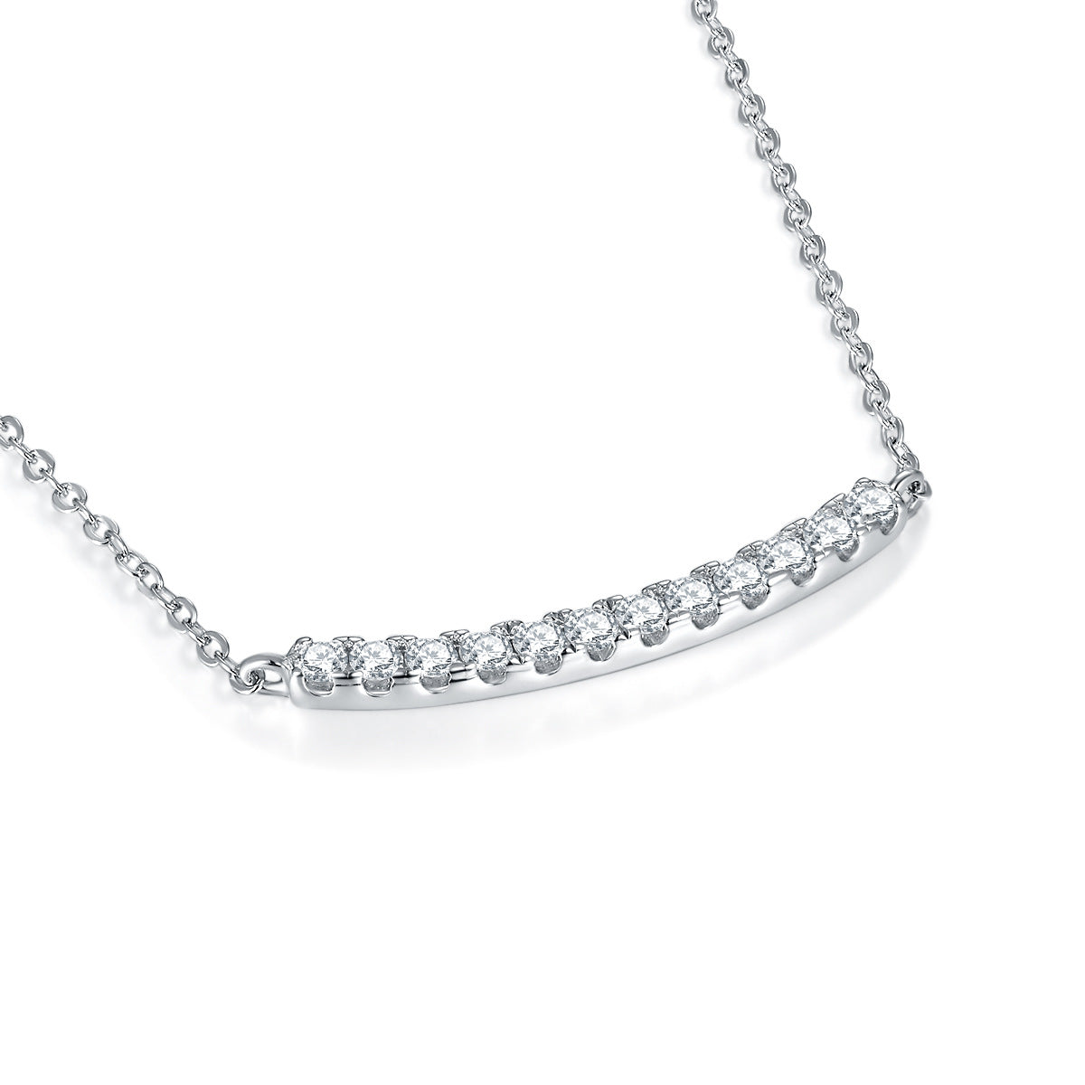 Expertly crafted with S925 silver plated and 18k gold, this simple smile necklace sparkles with D color moissanite diamonds. The ins stacking style adds a modern touch, making it perfect for any occasion. Shine with confidence and elegance wearing this exquisite piece.
