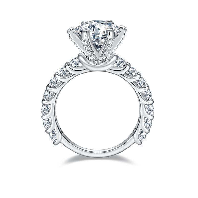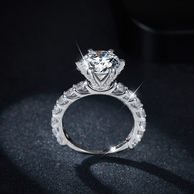 Introducing our Luxury Full Diamond 3 Carat Moissanite Ring. Featuring a brilliant 9.0mm round diamond set in a 925 silver plated 18k gold band, this ring offers unparalleled elegance and style. The perfect accessory for any occasion with a dazzling sparkle that will leave everyone in awe.