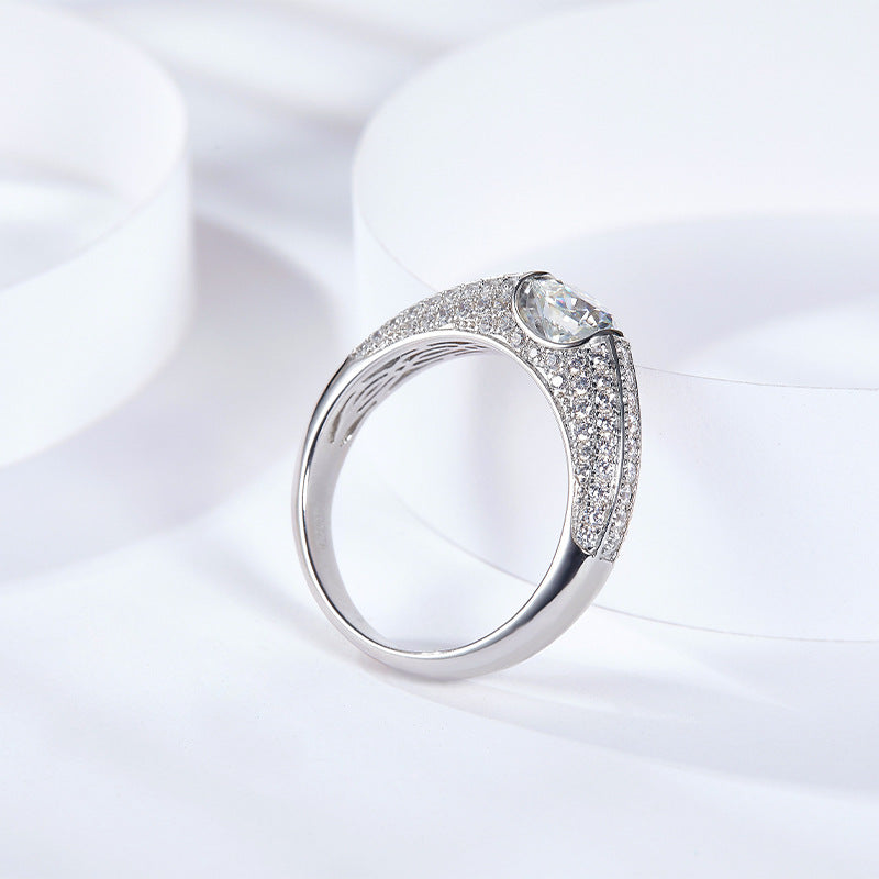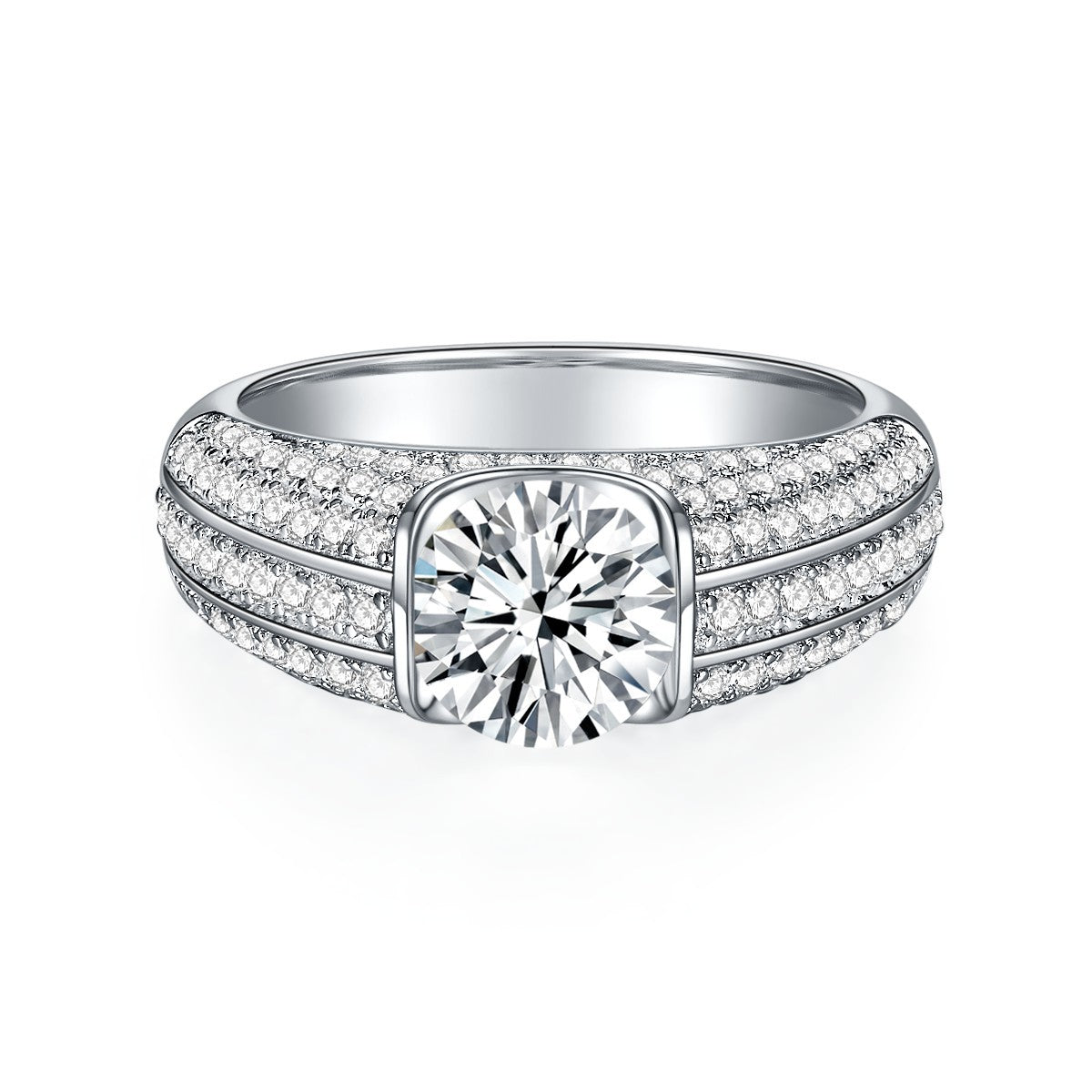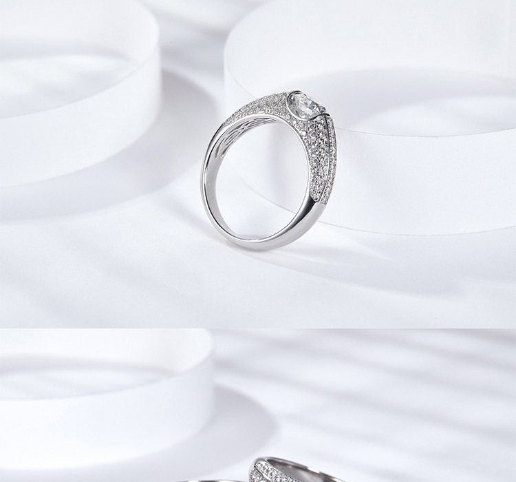 Experience true luxury with our domineering men's ring. Crafted with S925 silver and plated with 18k gold, this ring features a stunning 2 carat round moissanite diamond surrounded by full diamonds. Elevate your style and make a statement with our exquisite piece.