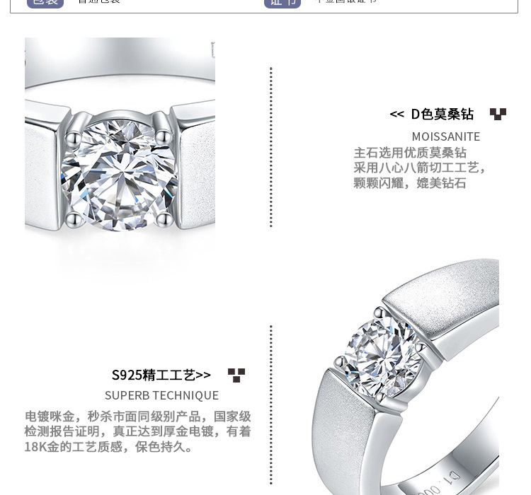 Experience the brilliance and durability of our Moissanite Diamond Ring. Crafted with 1 carat of shimmering moissanite, this ring is silver-plated with 18K white gold and features a unique matte finish. Perfect for wedding bands, this couple's ring is both stylish and long-lasting.