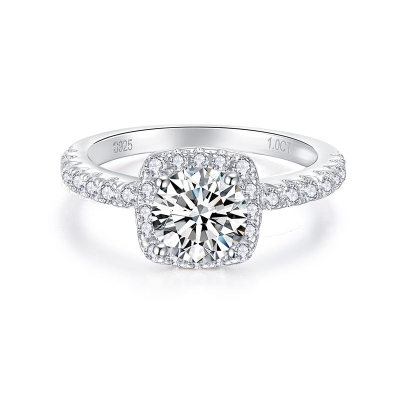 This stunning Moissanite Women's Ring is the epitome of luxury. Made with 3 carats of D Color moissanite stones, this ring will sparkle brilliantly on your finger. The square bag luxury setting gives a modern and elegant look, perfect for an engagement or wedding ring. Upgrade to the beauty and durability of moissanite.