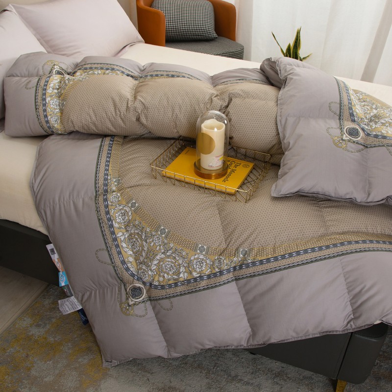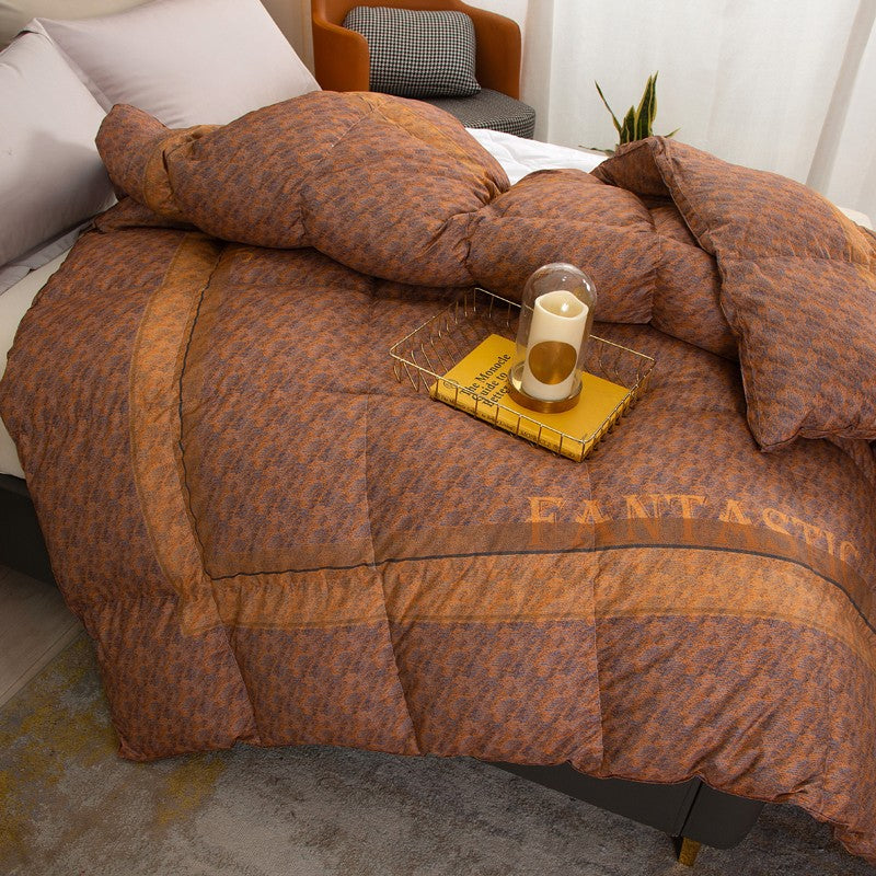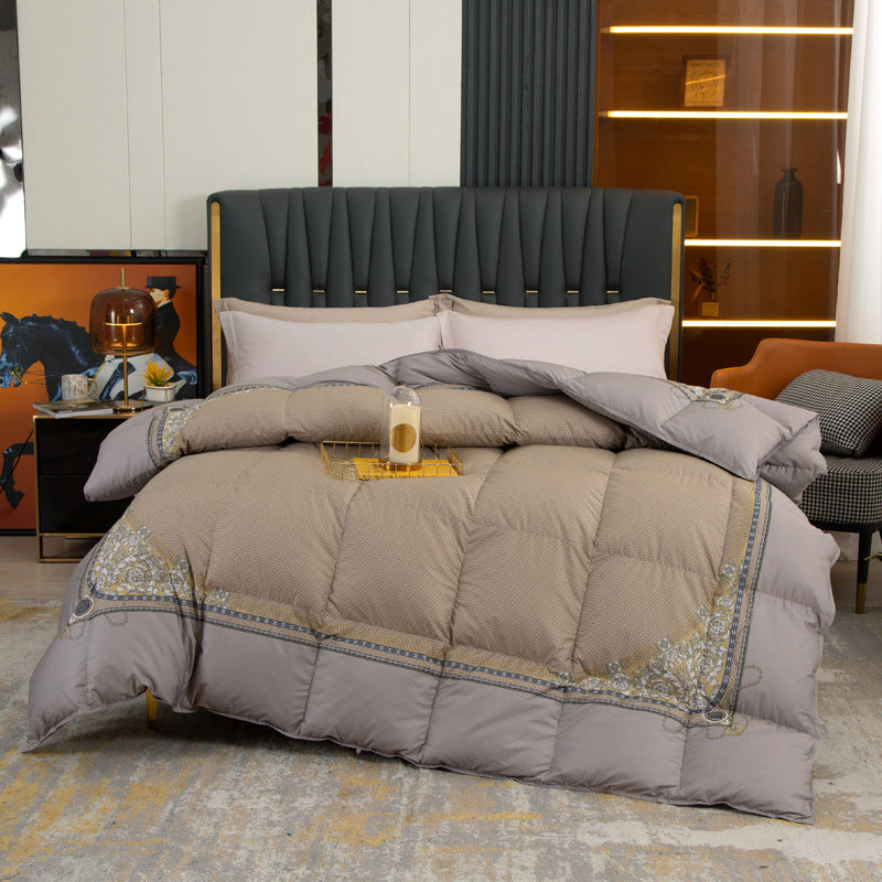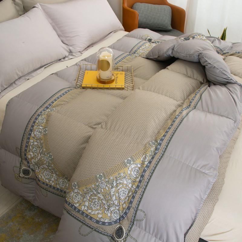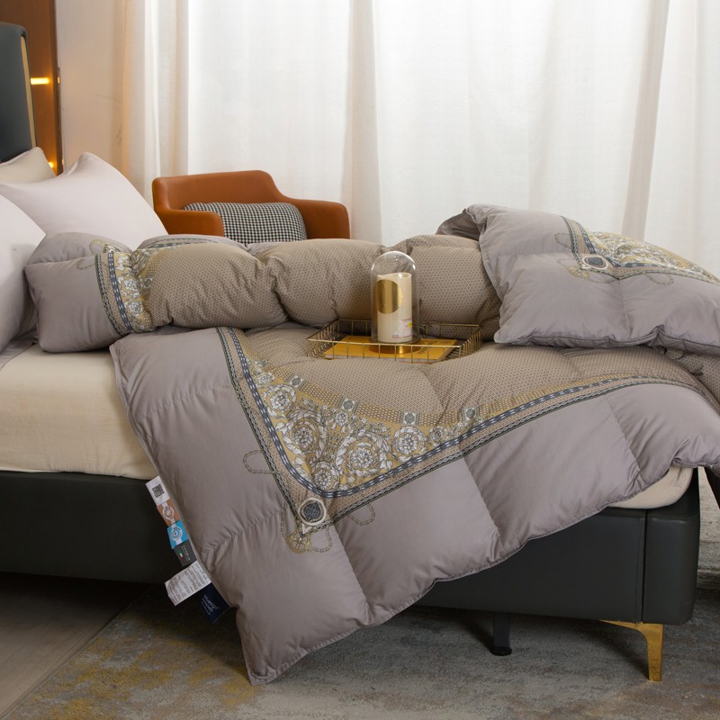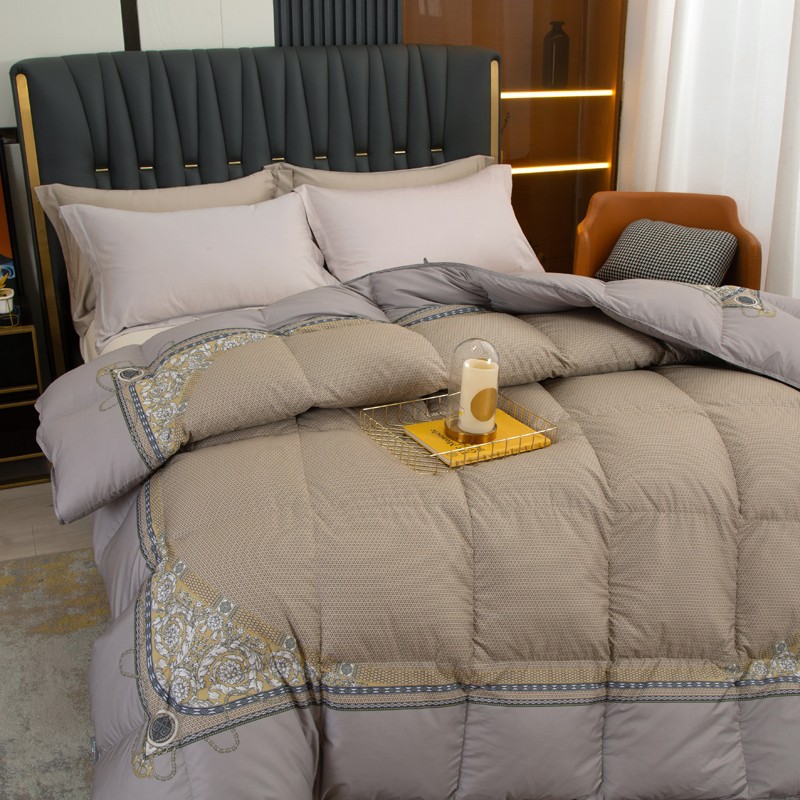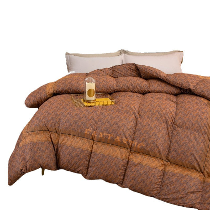 Experience ultimate comfort with our new encrypted Pima cotton duvet. Made with 95% white goose down, this quilt provides superior warmth and insulation. With a 160 count and digital printing, it's not only soft but also stylish. Stay cozy all winter long with our thickened and warm duvet.