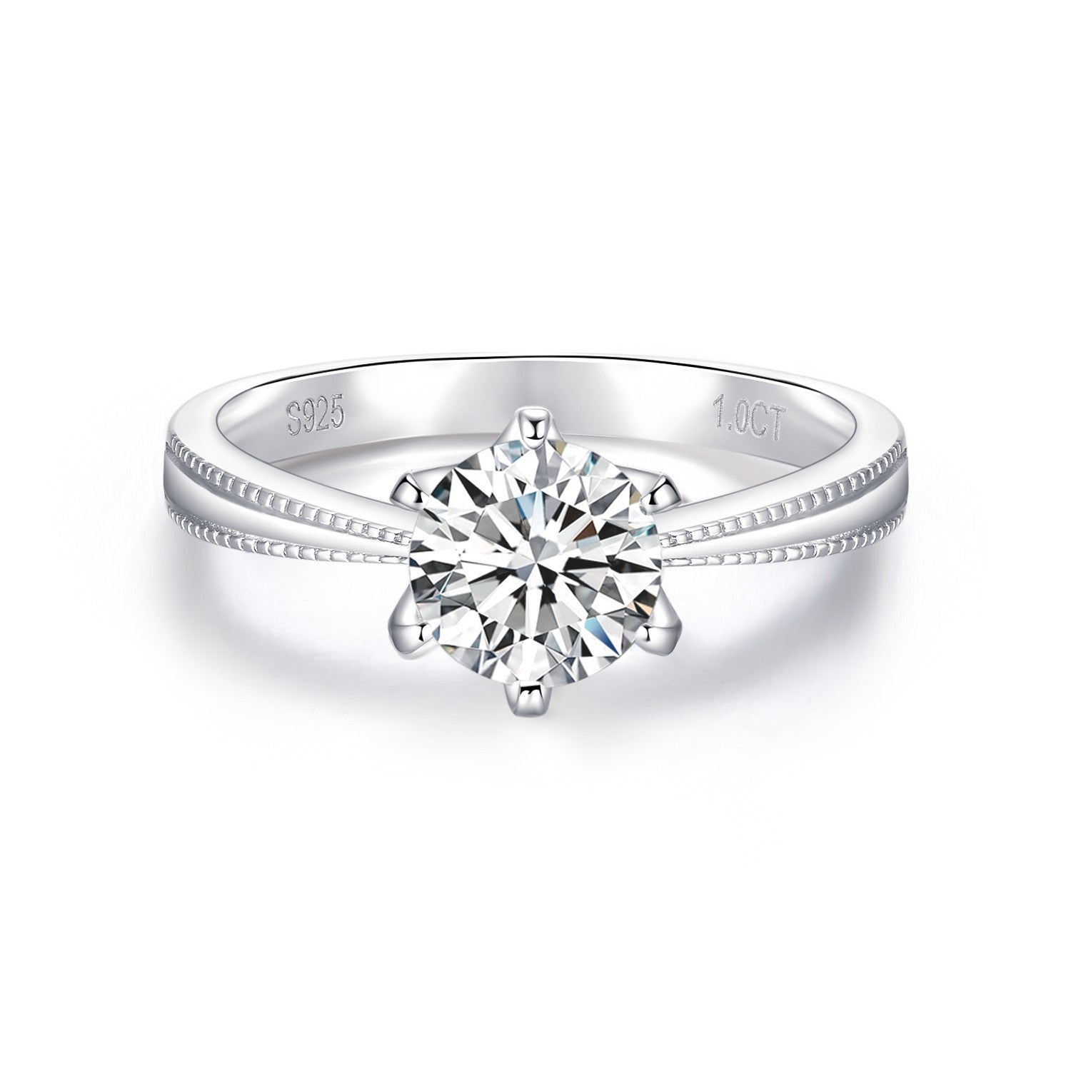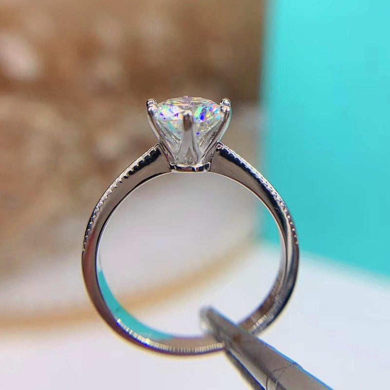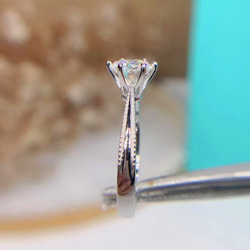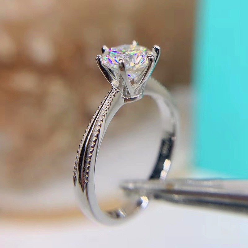 Elevate your jewelry collection with our new 925 silver moissanite bead edge ribbon six-prong ring. Its unique design features a sparkling moissanite bead and ribbon detailing, perfect for adding a touch of elegance to any outfit. Plus, it comes with a special gift for your significant other.