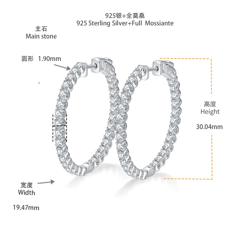 "Upgrade your earring collection with our New Hoop Earrings. Made of high-quality S925 Sterling Silver, these stud earrings are both durable and elegant. Adorned with luxurious Moissanite gems, they add a touch of sophistication to any outfit. Elevate your style and sparkle with these stunning earrings."