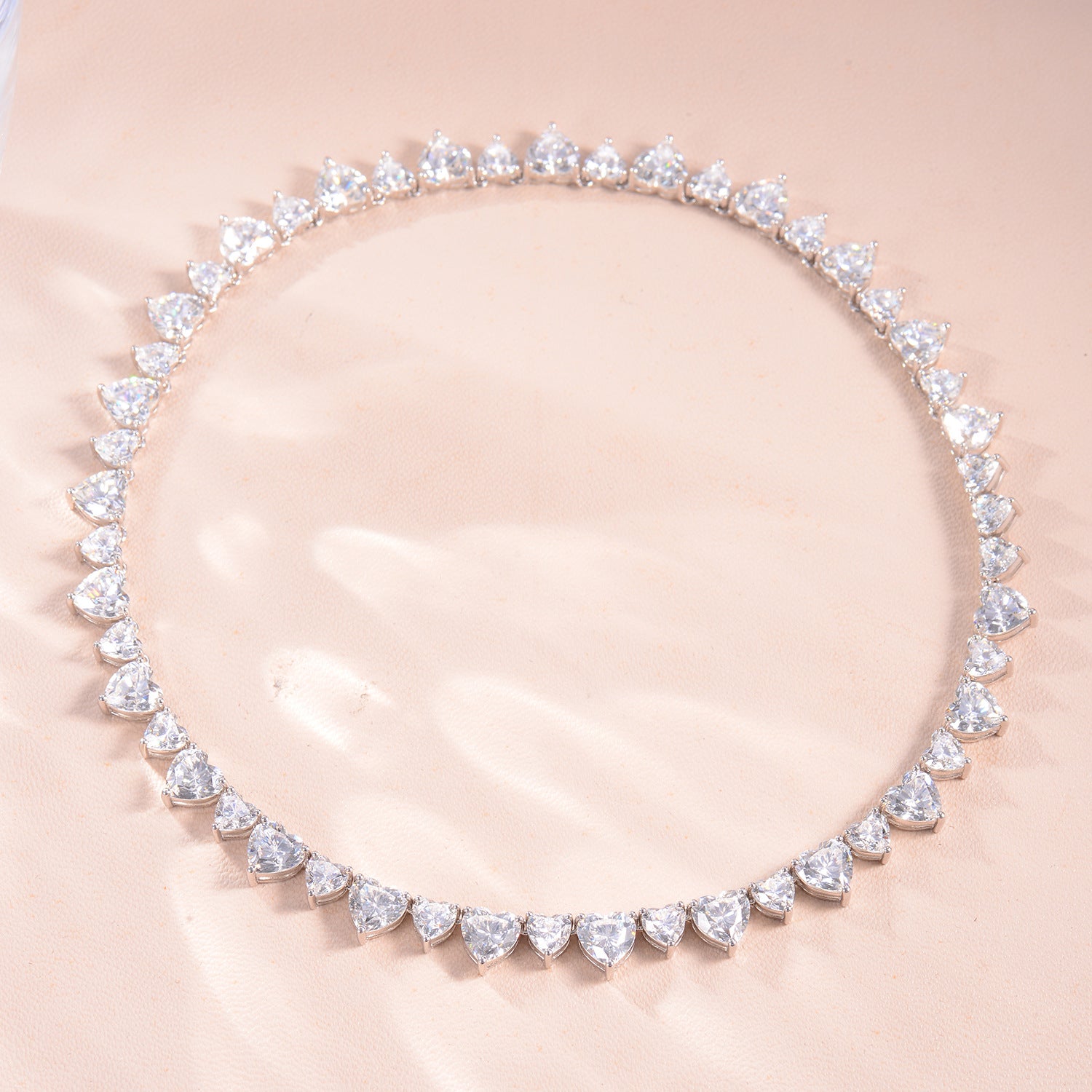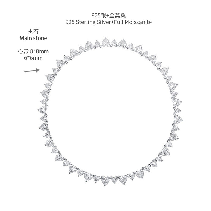 Upgrade your jewelry collection with our New Set of Chains Full Diamond Heart Shape Necklace. Crafted with 8*8mm Moissanite stones, this necklace offers a touch of luxury with its silver plated 18k gold design. Make a statement and add a spark of elegance to any outfit.