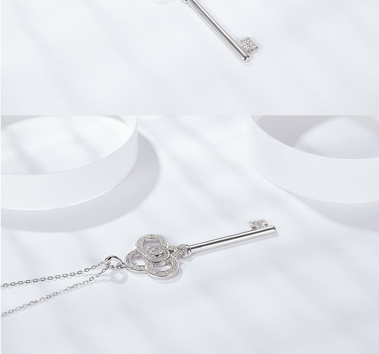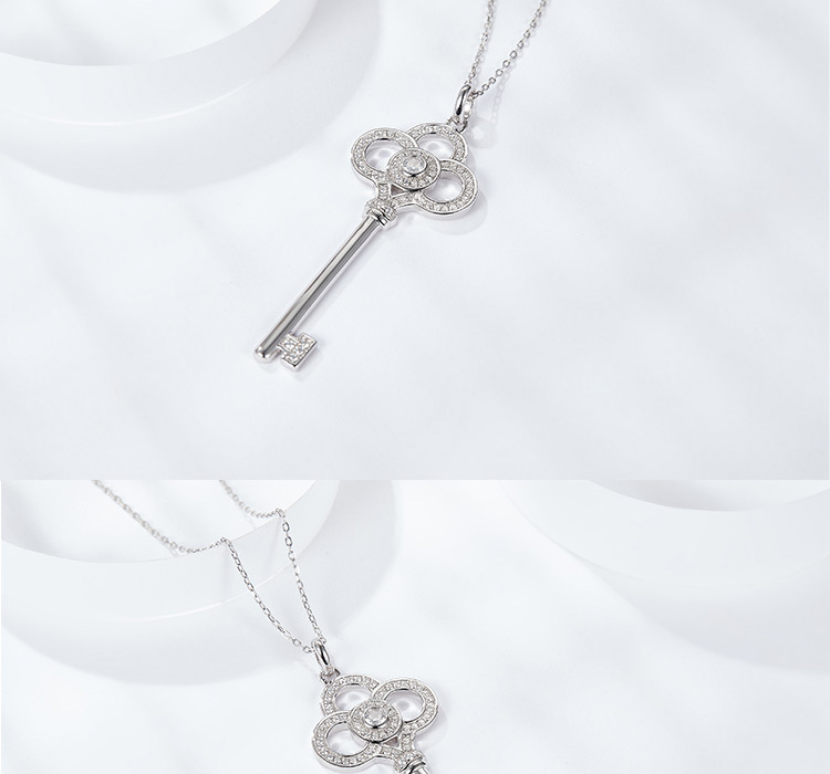 This New Style 925 Sterling Silver Women's Fashion Pendant Key Heart Crown Moissanite Necklace is a beautiful and elegant piece of jewelry. Made from high-quality sterling silver, it features a key-shaped pendant with a heart and crown design, adorned with sparkling moissanite stones. It is perfect for adding a touch of glamour to any outfit and makes a great gift for any special occasion.