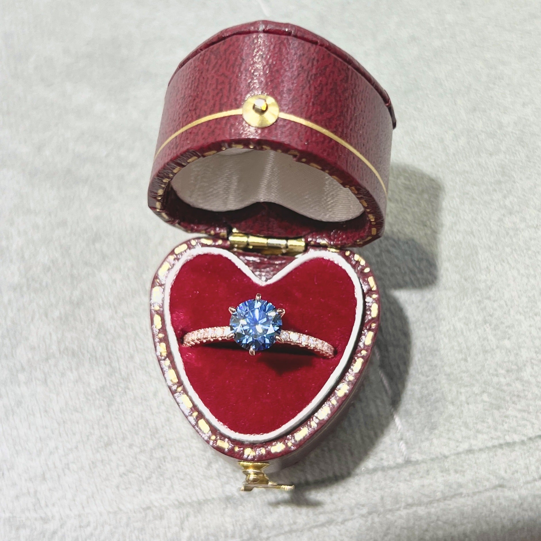 Expertly crafted with a royal blue 6.5mm moissanite stone, this ring exudes timeless elegance. The S925 silver plated with 18k rose gold adds a touch of luxury, making it a perfect accessory for any woman. A dazzling ring that will surely impress.