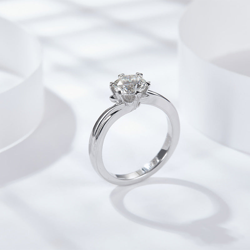 Expertly crafted with high-quality S925 silver and white gold, this wedding ring sparkles with a stunning moissanite twist arm and snowflake design. The closed mouth feature adds a touch of elegance while the durable materials ensure long-lasting wear. Radiate beauty and sophistication with this one-of-a-kind wedding ring.