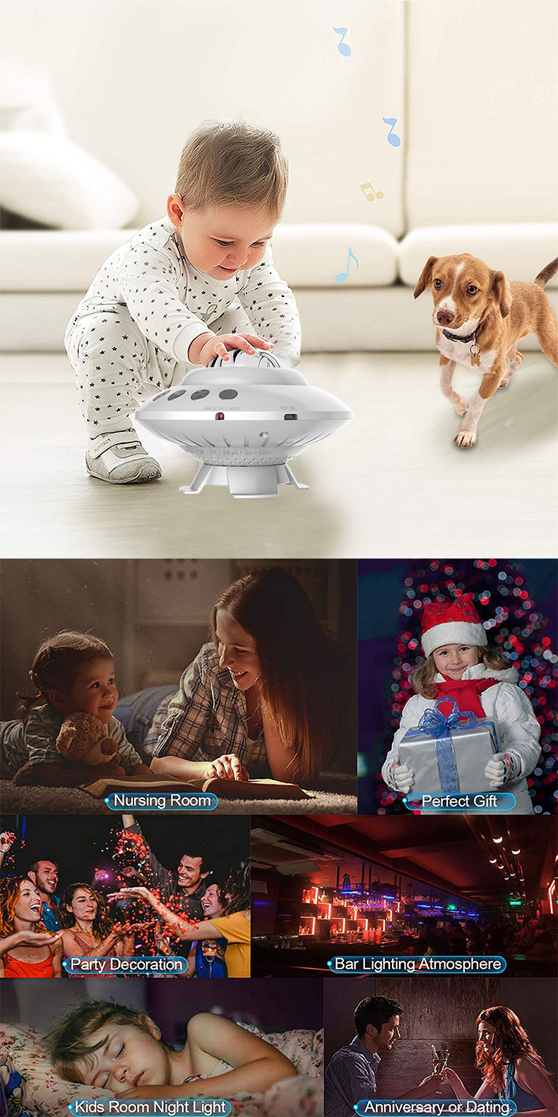 The star projector night light makes a wonderful addition to any celebration or room. It's suitable for birthdays, parties, weddings, room decor, children's days, Christmas, and anniversaries. Encourage children's curiosity, imagination, and creativity. This is also a perfect ocean wave projector, romantic mood light, night lamp, and bedside lamp for indoor decoration.