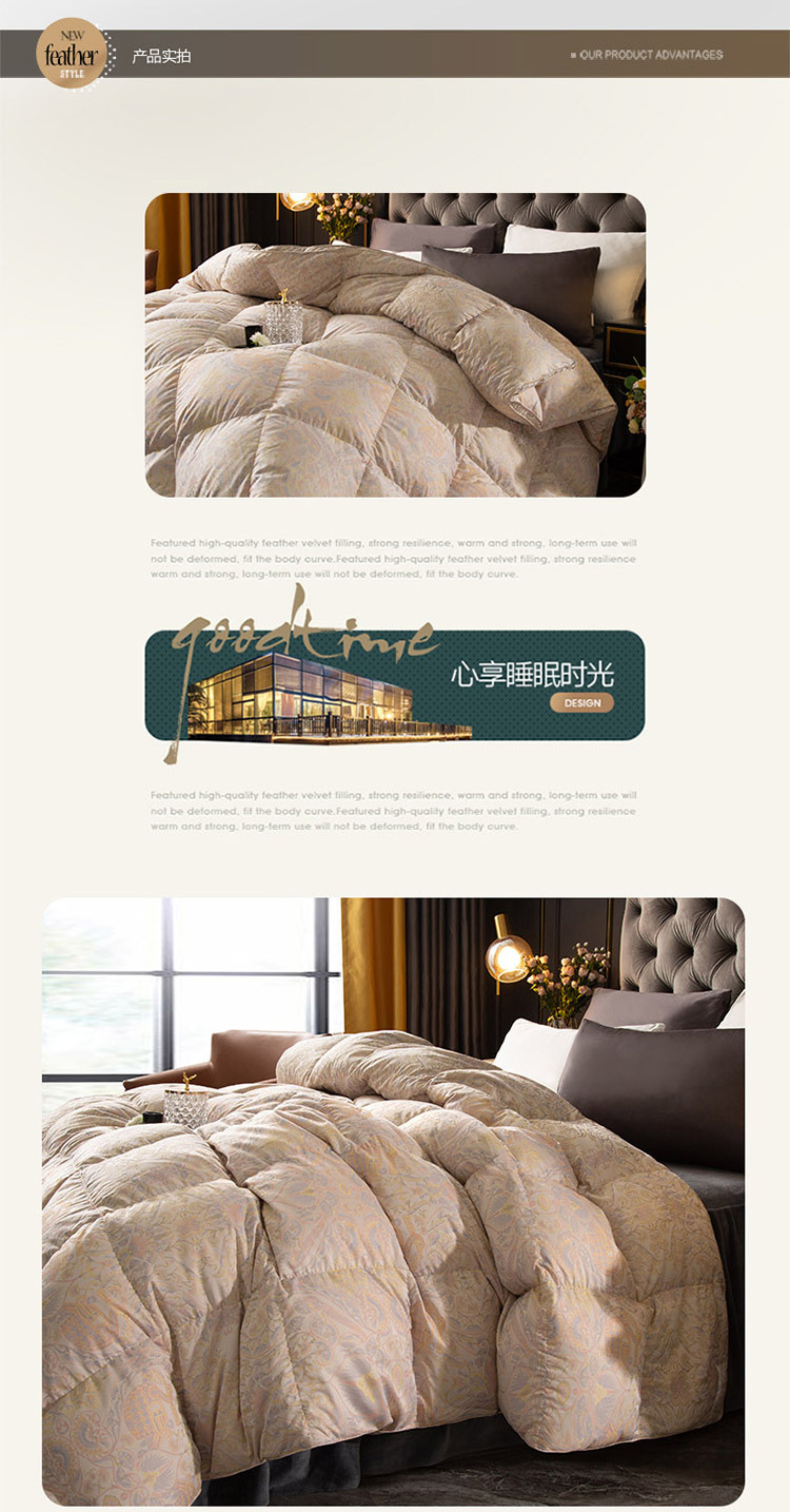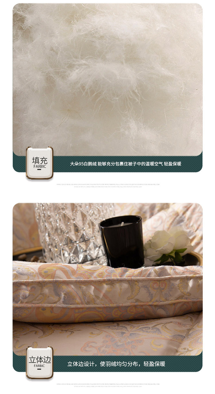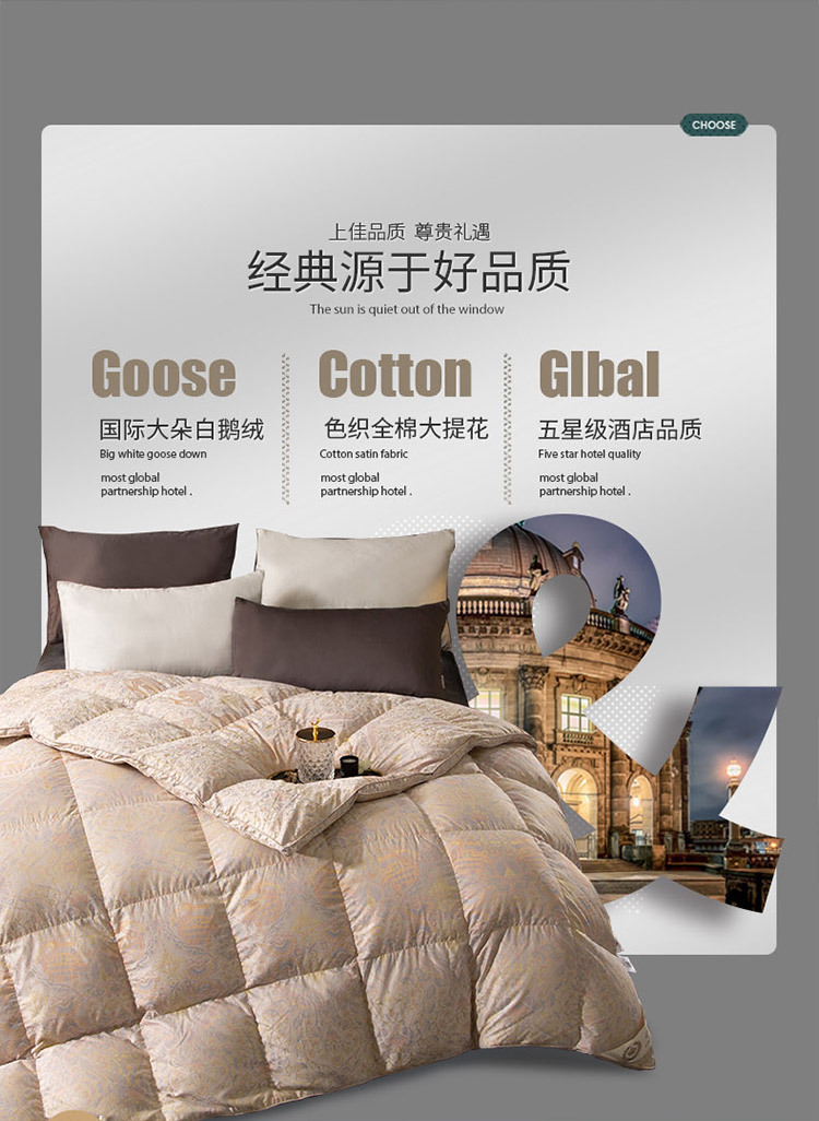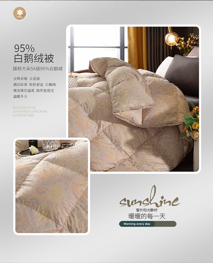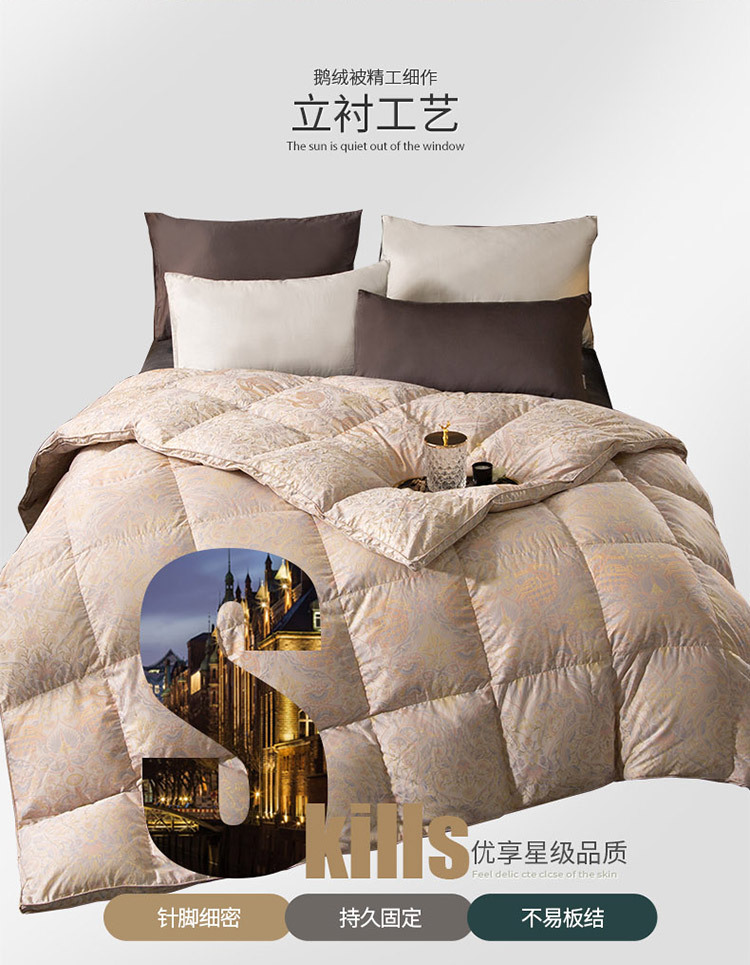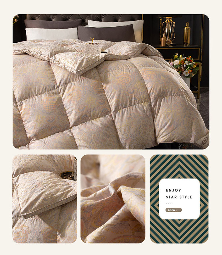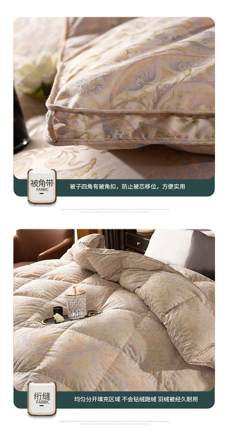 Experience luxury and comfort with our hotel's high-end double-layer duvet. Made with 120 jacquard and 95% white goose down, it's perfect for winter nights. Thickened for warmth and durability, it's the ideal choice for a wedding quilt. Sleep soundly with our premium quality winter quilt.