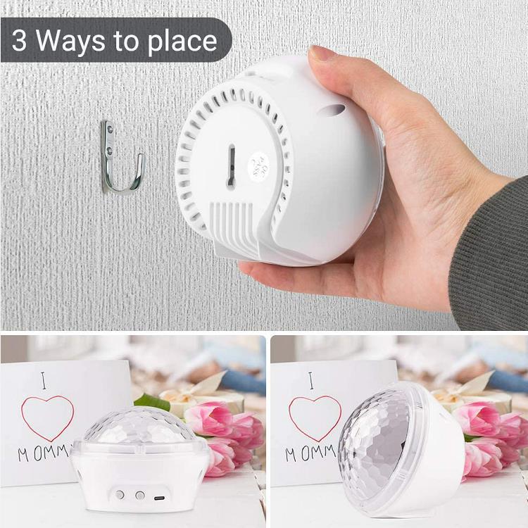 You can place the Night Lights Star Projector vertically or sideways. You can hang the projector light on the wall using the hanging clips on the bottom.