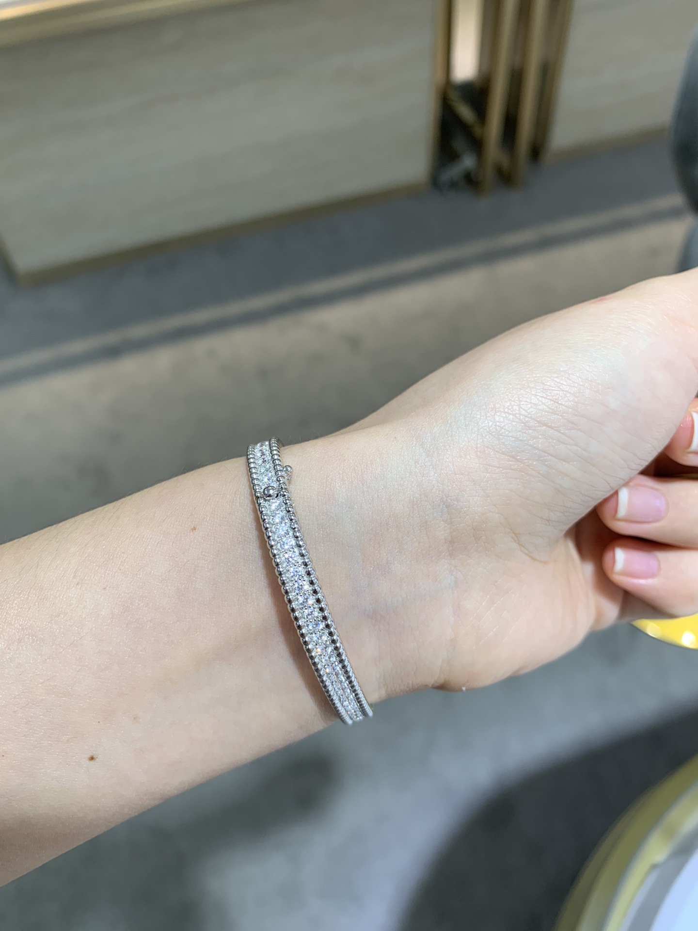 Enhance your accessory game with our versatile stacking bracelet. Made with full moissanite beads and a bead edge design, this narrow bracelet is perfect for adding a touch of elegance to any outfit. Crafted from durable 925 silver plated with 18k gold, it is a timeless addition to any jewelry collection.