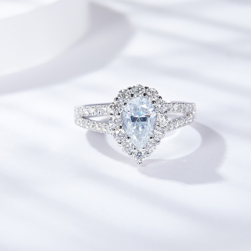 This elegant water drop pear shaped ring features a 5*8mm full moissanite stone, set in a shimmering silver plated 18k gold band. The combination of the unique pear shape and sparkling moissanite make for a stunning piece of jewelry that is sure to catch the eye.
